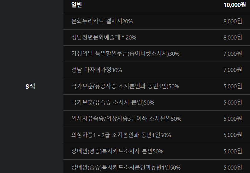 특정 기간, 특정 공연일에만 판매되는 가격이 있으니 예매할 때 참고해주세요.
